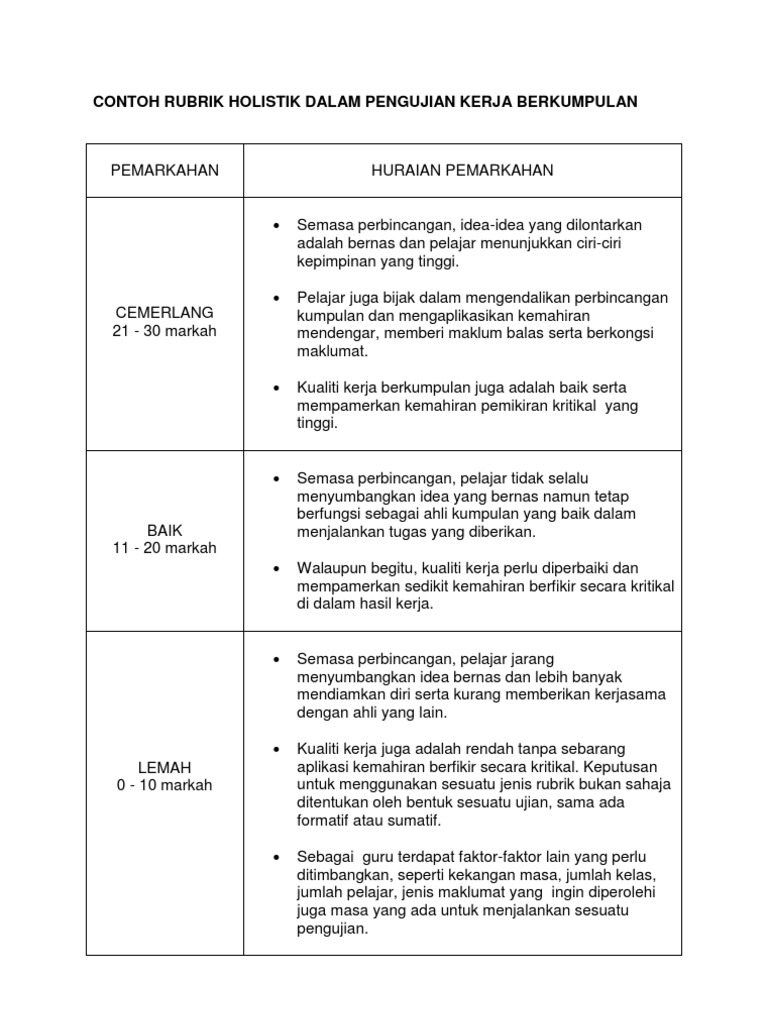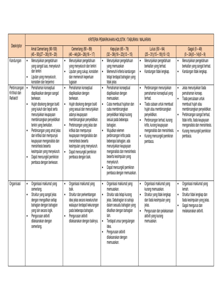 Rubrik Pemarkahan Holistik Esei Pdf