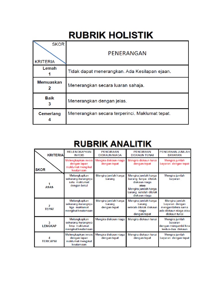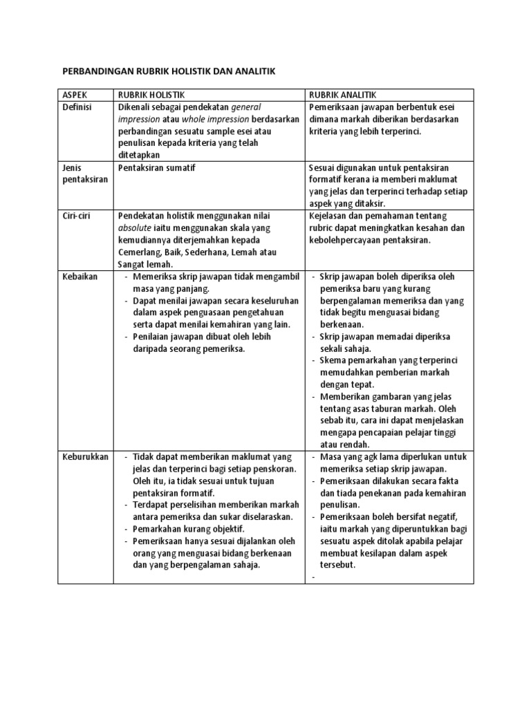 Perbezaan Rubrik Holistik Dan Rubrik Analitk Tuto 4 Pdf